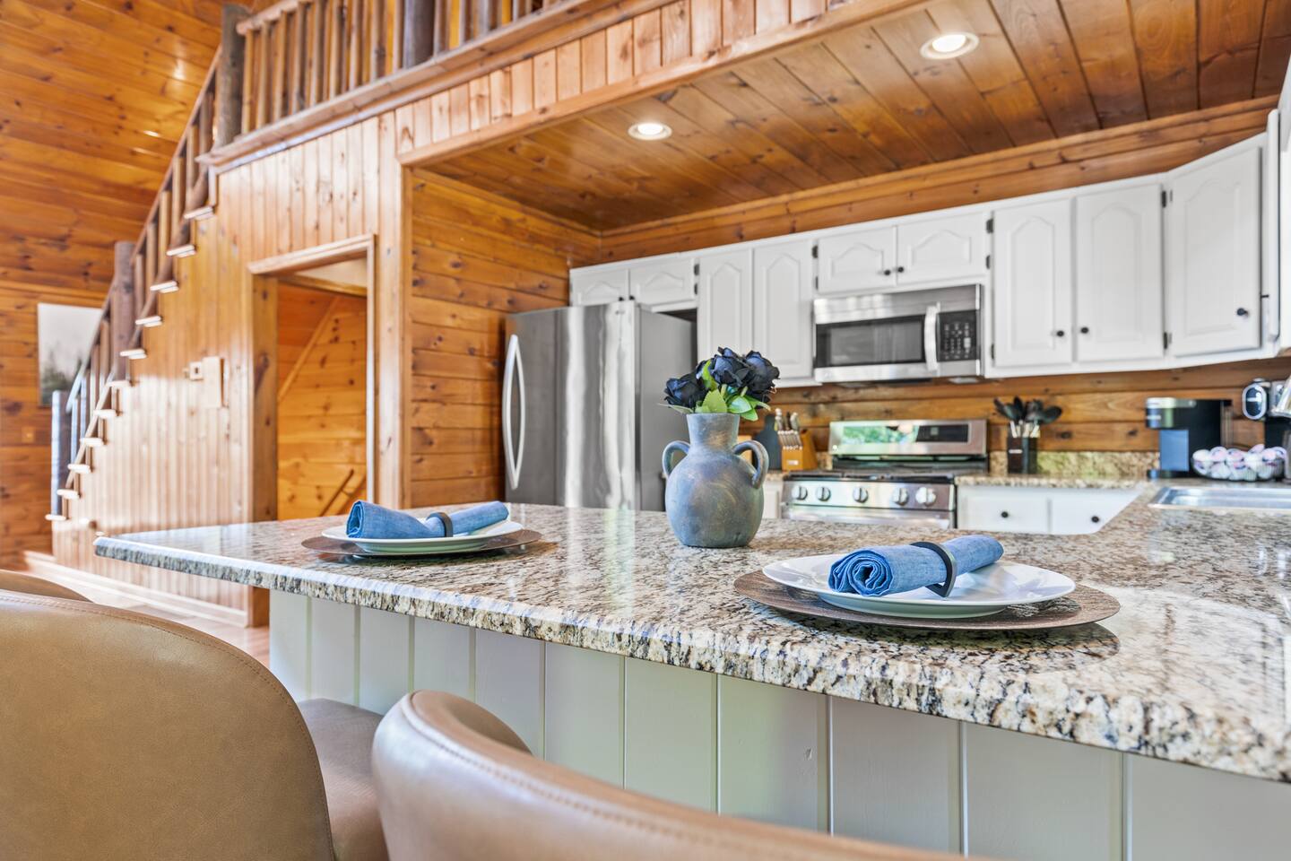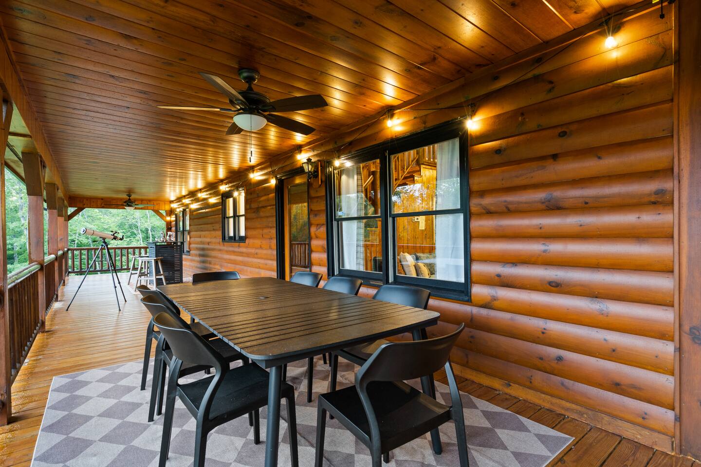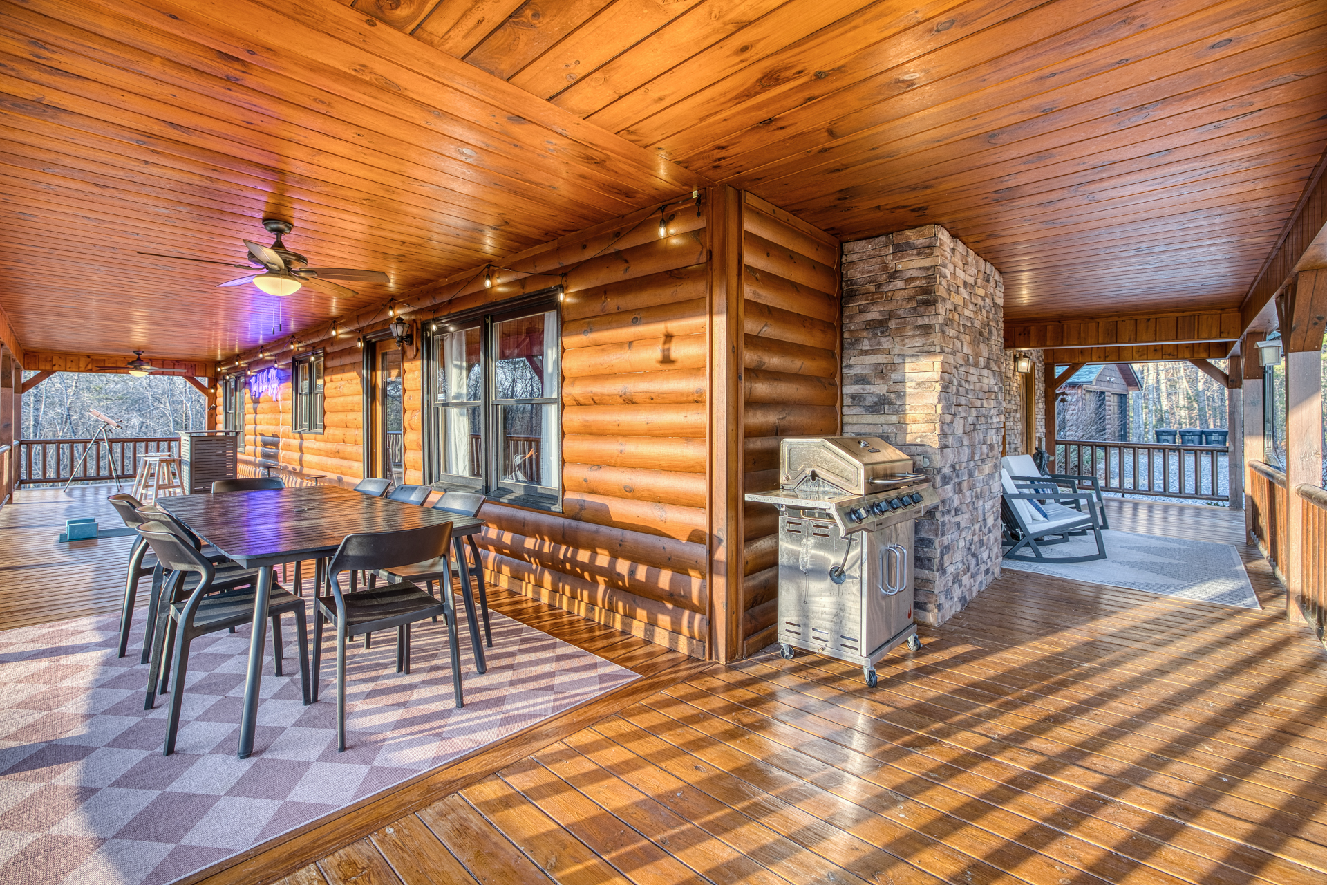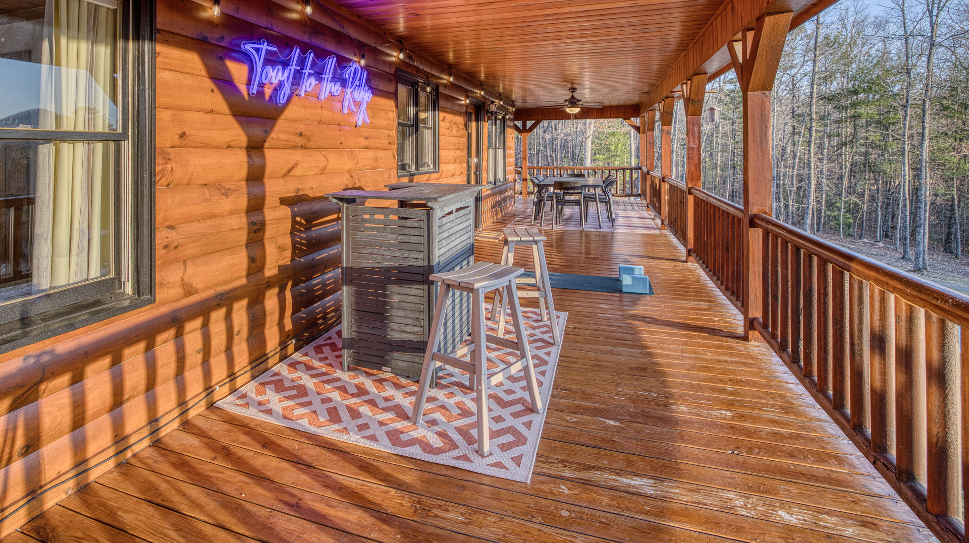 A one-of-a-kind retreat with a private pickleball court, wrap-around deck, covered hot tub, fire pit, and arcade-style game room. 🏷 Main Floor Kitchen & Dining Room ∙ FULLY stocked kitchen w/plenty of counterspace for at-home baking and cooking ∙ Elegant KEUREG, coffee maker, tea kettle, blender and toaster ∙ Cooking oils and seasoning essentials ∙ Abundance of dishware, glassware and silverware, including children’s ∙ Full-sized fridge and freezer ∙ Gas stove and oven ∙ Cuisinart coffee maker ∙ BLACK DECKER coffee drip ∙ Microwave ∙ Airfryer ∙ Trash compactor ∙ Dishwasher ∙ Dining room table, seating for 8 ∙ Large countertop space for food preparation ∙ Breakfast table, 2 high chairs Living Room ∙ 50” Smart TV ∙ Netflix, Prime Video, Disney Plus, Hulu, HBO and more ∙ Sound system ∙ Vaulted ceiling ∙ Fireplace ∙ Ceiling fan ∙ Comfortable velvet sofa ∙ Access to upper deck/balcony Laundry Room ∙ GE high-efficiency washer/dryer ∙ Tide Free and Gentle ∙ Hangers ∙ Drying rack Bedroom #3 ∙ King size bed ∙ Premium mattress and comforter ∙ Smart TV ∙ Room darkening shades ∙ Bedside table and lamp ∙ Large closet w/ hangers ∙ Dresser ∙ Ceiling fan ∙ Full-lenght mirror Bathroom #2 ∙ Shower ∙ Bathtub ∙ Single vanity with oversized mirror and plenty of counterspace ∙ Shampoo, conditioner and body soap ∙ Makeup washcloth 🏷 2nd Floor Bedroom #1 (Primary Bedroom) ∙ King size bed ∙ Premium mattress and comforter ∙ Smart TV ∙ Room darkening shades ∙ Bedside table and lamp ∙ Large closet w/ hangers ∙ Bedroom bench ∙ Dresser ∙ Full-lenght mirror ∙ Workstation/reading table Bathroom #1 (Ensuite) ∙ Shower ∙ Bathtub ∙ Single vanity with oversized mirror and plenty of counterspace ∙ Shampoo, conditioner and body soap ∙ Makeup washcloth 🏷 Bottom Floor/Basement Bedroom #2 ∙ 2 Queen size beds ∙ Premium mattress and comforter ∙ Smart TV ∙ Room darkening shades ∙ Bedside table and lamp ∙ Large closet w/ hangers ∙ Dresser ∙ Ceiling fan ∙ Full-lenght mirror ∙ Luggage rack Bedroom #4 ∙ Queen size bed ∙ Premium mattress and comforter ∙ Smart TV ∙ Room darkening shades ∙ Bedside table and lamp ∙ Large closet w/ hangers ∙ Dresser ∙ Ceiling fan ∙ Full-lenght mirror Bedroom #5 (Bunk Room) ∙ 2 Bunk beds ∙ Premium mattress and comforter ∙ Smart TV ∙ Room darkening shades ∙ Bedside table and lamp ∙ Large closet w/ hangers ∙ Dresser ∙ Full-lenght mirror Game Roon ∙ Smart TV ∙ Fireplace ∙ Ceiling fan ∙ Leather sofa ∙ Board games ∙ Pool table (kid-friendly size) ∙ Foosball/Ping-pong table (kid-friendly size) ∙ NBA Jam arcade machine Bathroom #3 ∙ Shower ∙ Bathtub ∙ Single vanity with oversized mirror and plenty of counterspace ∙ Shampoo, conditioner and body soap ∙ Makeup washcloth 🏷 Outdoor Space(s) Balcony/Upper Deck ∙ Dining table, seating for 8 ∙ Ceiling fan ∙ Rocking chairs ∙ Barbeque grill ∙ Telescope Lower Deck ∙ Outdoor sofa ∙ Hot tub ∙ Swing chairs ∙ Play area ∙ Giant Connect 4 game ∙ Coffee bar Backyard ∙ Pickle ball court ∙ Fire pit ∙ Outdoor seating ∙ Cornhole, Giant Jenga/Connect 4, Ladderball 🏷 Parking ∙ Driveway parking for 6 vehicles 🚘 Nearby ∙ Downtown Blue Ridge (5–10 min): Boutique shops, art galleries, cozy cafés, craft breweries, local eateries. ∙ The Yellowphant Cafe (6–10 min): Popular breakfast/brunch café with a great local vibe. ∙ Rum Cake Lady Cuban Cafe (6–10 min): Must-try Cuban sandwiches & rum cakes. ∙ Misty Mountain Hops (6–10 min): Local brew + burgers in a relaxed outdoor bar setting. ∙ Harvest On Main (6–10 min): Southern comfort cuisine in a welcoming setting. ∙ Southern Charm Restaurant (6–10 min): Classic southern eats perfect for lunch or dinner. ∙ The General Ledger (6–10 min): Casual American fare with a great seasonal menu. ∙ Chester Brunnenmeyer's (6–12 min): Local bar & grill with a fun atmosphere and diverse menu. ∙ THE PASTA MARKET (6–12 min): Highly rated pasta house in town. ∙ Fightingtown Tavern (6–12 min): Classic tavern with local beers and comfort food. ∙ Lake Blue Ridge Marina (12–15 min): Scenic lakeside spot for boating, kayaking, paddleboarding. ∙ Mercier Orchards (12–15 min): Farm market, U-pick fruit (seasonal), cider & fresh pies. ∙ Toccoa River Swinging Bridge (12–18 min): Easy river walk and iconic suspension bridge adventure. ∙ Fall Branch Falls Trail (15–20 min): Family-friendly waterfall hike with scenic forest views. ∙ Aska Trails Area (15–20 min): Extensive hiking & mountain biking trails in Chattahoochee National Forest. ∙ Long Creek Falls Hike (15–20 min): Picturesque waterfall on wooded trail. ∙ Blue Ridge Scenic Railway (10–15 min): Historic train ride along the Toccoa River (seasonal schedules). ∙ Bear Claw Vineyards (15–18 min): Local vineyard with tastings and live music (seasonal). ∙ Serenberry Vineyards (18–22 min): Rustic winery with small-batch wines and scenic tasting area. ∙ Blue Hole Falls – High Shoals Trail (30–40 min): Rewarding waterfall hike in Chattahoochee National Forest.